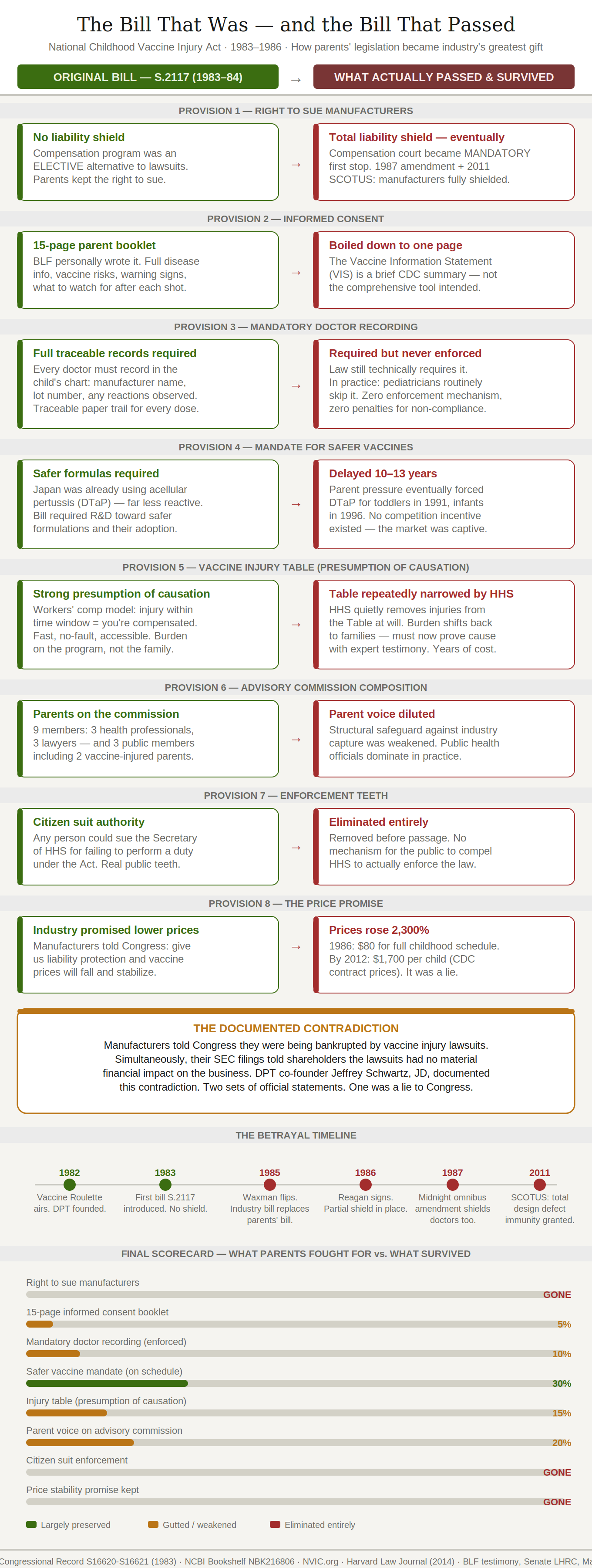 Before Congress ever voted on the 1986 Act, vaccine manufacturers had already spent a decade quietly engineering an information blackout. Nearly every vaccine injury lawsuit settled at the courthouse steps — for pennies, and always with one non-negotiable condition: seal the records. Internal memos, safety data, lot-specific reaction records, everything uncovered in discovery — buried. By the time Congress sat down to write the law, the full picture of what manufacturers knew and when they knew it was locked away in hundreds of sealed court files across the country. The information vacuum Congress legislated in wasn't an accident. The industry built it, one settlement at a time.